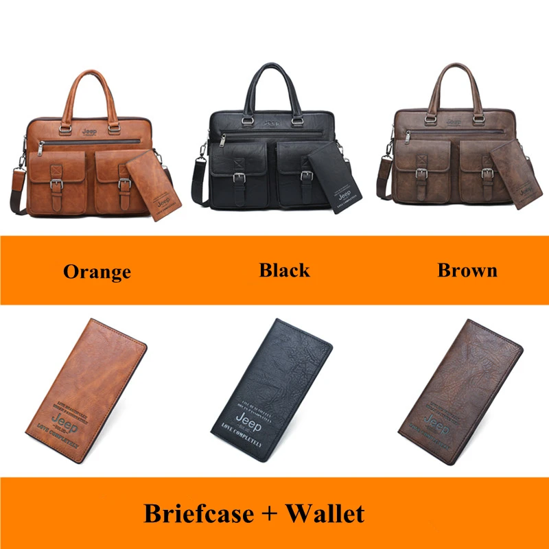 Buy JEEP BULUO Famous Brand Business Briefcase Bag2pcs/set Split Leather Shoulder Bag Men office Bags F Right Here and Right Now, Because before price is changed you will just pay for US $40.47, not in Reguler Price at US $68.60. Yap! This is I mean you will Save 41%