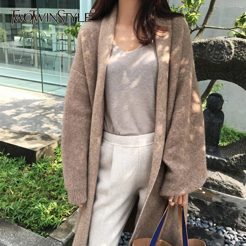 TWOTWINSTYLE Knitted Sweater For Women V Neck Long Sleeve Oversized Korean Cardigans Female Autumn Winter Fashion New 2019