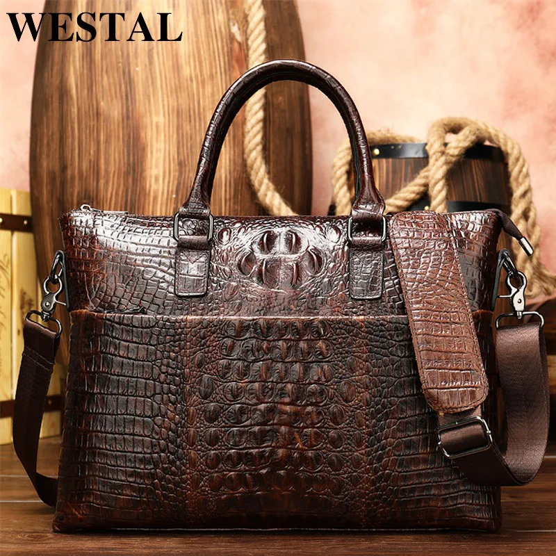 WESTAL Alligator Design Male Bag Genuine Leather Messenger Bag Men Shoulder Bags Leather Crossbody Bags for Men Handbags Totes