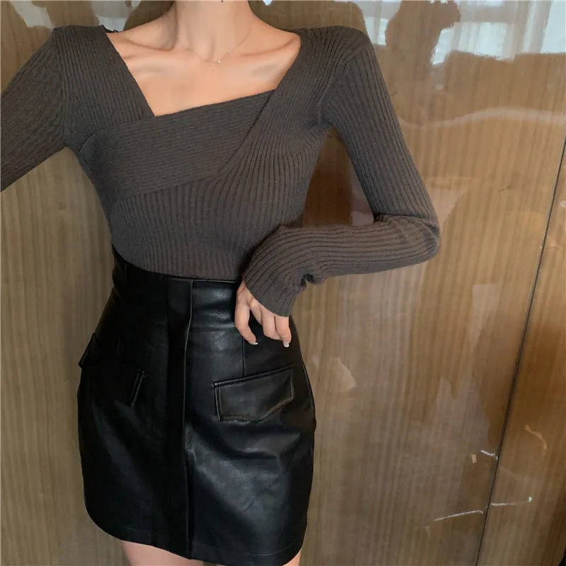 Cheap Price of Gagaok Women Sexy Knitted Sweater Autumn Winter New Irregular Full Solid Thick Slim Wild Harajuku F